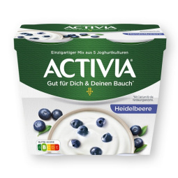 JOGURT, 8 % borovnic, sladkor, modificirani škrob, kot barvilo koncentrat črnega korenja, sredstvo za zgostitev pektini, sredstvo za uravnavanje kislosti citronska kislina, natrijevi citrati; naravna aroma. S kulturo Bifidus ActiRegularis®.