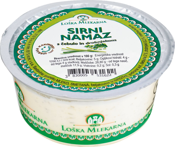 Sirni namaz, čebula - drobnjak, Loška mlekarna, 150 g