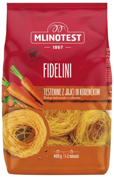 Testenine Fidelini z jajci in korenčkom, Mlinotest, 400 g