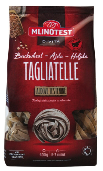 PŠENIČNI durum zdrob, AJDOVA moka 22 %, PŠENIČNA črna moka, PŠENIČNE vlaknine. Lahko vsebuje sledove JAJC, SOJE in GORČIČNIH SEMEN.