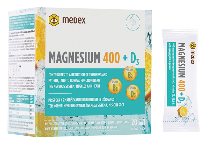 Instant napitek, Magnezij 400 in D3, Medex, 20/1
