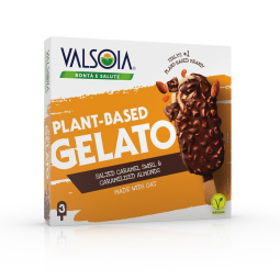 Rastlinski sladoled na palčki, slana karamela s čokoladnim prelivom in karameliziranimi mandlji, Valsoia, 3 x 80 ml