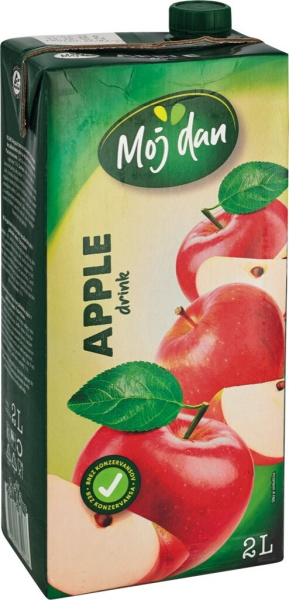 Voda, jabolčni sok iz zgoščenega sadnega soka 15 %, glukozni-fruktorzni sirup, sladkor, kislina: citronska kislina, aroma, sredstvo za uravnavanje kislosti: natrijevi citrati; barvilo: amonijev sultni karamel. Brez konzervansov.