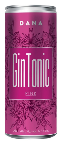 Mešana gazirana alkoholna pijača, Gin Tonic Pink, Dana, 4,5 % alkohola, 0,33 l