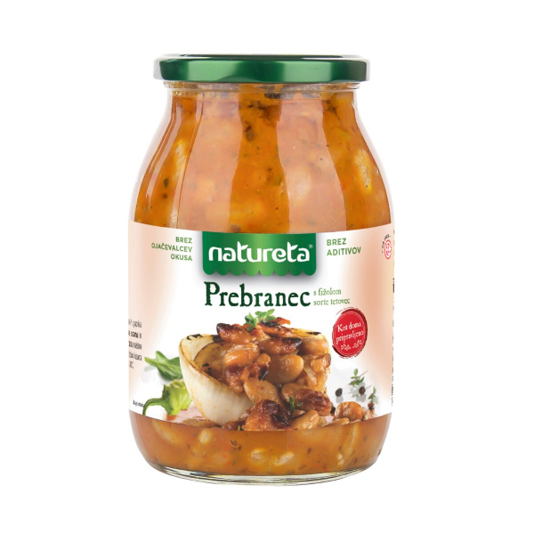 Fižol 35 %, voda, pražena čebula (čebula, sončnično olje), korenje 6 %, zelena 6 %, paprika rdeča 6 %, por 3 %, jedilna sol, začimbe