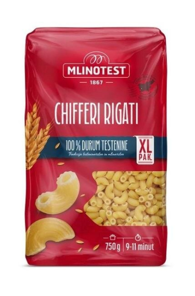Durum polžki, Chifferi Rigati, št. 26, Mlinotest, 750 g
