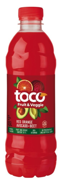 Negazirana pijača, rdeča pesa, avokado in rdeča pomaranča, Toco, 0,5 l