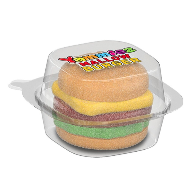 Sladkor, koruzni sirup, voda, dekstroza, želirno sredstvo: želatina; koruzni škrob, aroma (jagoda), barvila: E129, E102, E133, E153, E160a(i), E163(viii).