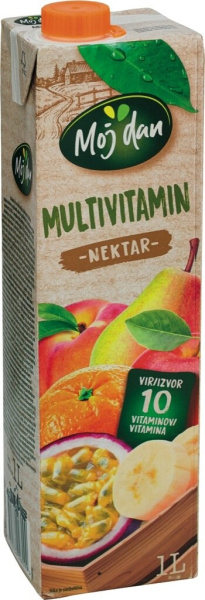 Voda, jabolčni sok iz zgoščenega sadnega soka (18,4 %), pomorančni sok iz zgoščenega sadnega soka (12,6 %), hruškov sok iz zgoščenega sadnega soka (6,7 %), breskova kaša iz zgoščene sadne kaše (6,3 %), sok iz pasijonke iz zgoščenega sadnega soka (3,8 %), bananina kaša iz zgoščene sadne kaše (3,4 %), sladkor, limetin sok iz zgoščenega sadnega soka (0,8 %), kislina: citronska kislina; sladilo: sukraloza; vitamini: vitamin C. niacin, Vitamin E, pantotenska kislina (vitamin B5), vitamin B6, tiamin (vitamin B1), vitamin A (iz provitamina A), folna kislina, biotin (vitamin B7), vitamin B12.