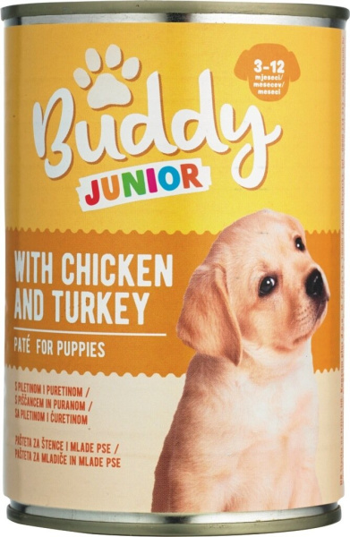 Hrana za pse Junior, piščanec in puran, Buddy, 400 g