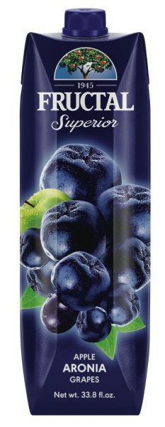 Voda, jabolčni sok iz zgoščenega soka 33,00 %, aronjin sok iz zgoščenega soka 10,00 %, grozdni sok iz zgoščenega soka 7,00 %, kislina (citronska kislina), sladilo (sukraloza).