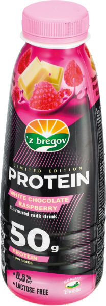 Mlečni napitek s proteini, bela čokolada in malina, Z Bregov, 500 ml