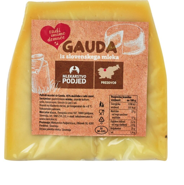 Poltrdi mastni sir Gauda, 45 % m. m., pakirano, cena za kg