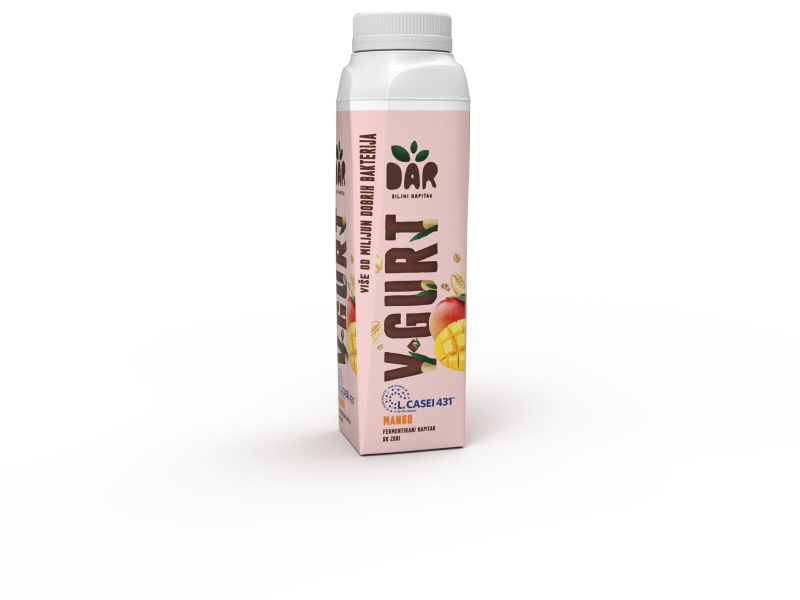 Voda, 10,7 % ovsa, 7,7 % manga in mangove pulpe (iz koncentrata), sladkor, modificiran škrob (tapioka, koruza), sončnično olje, 0,8 % sok pasijonke (iz koncentrata), naravne arome, stabilizatorja pektin in gelan gumi, koncentriran korenčkov sok, sol, kultura L. CASEI 431™ Lactobacillus paracasei min. 108 cfu/ml, veganska jogurtova kultura.