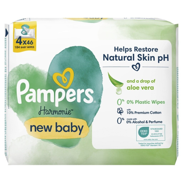 Otroški vlažni robčki, Harmonie New baby, Pampers, 4 x 46/1