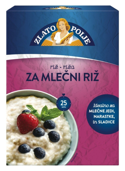 Pri kuhanju morajo riževa zrna enakomerno nabrekniti, obdržati svojo obliko in se ne smejo zlepiti ali razkuhati. Priprava; razmerje riž:voda je 1:3, čas kuhanja je 12-15 min. Na zaklopnici je na fronti označen čas priprave jedi - mlečni riž.