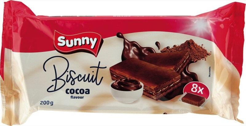 Biskvit 80 % (PŠENIČNA moka, sladkor, JAJCE v prahu, kakav v prahu 6 %, sredstvo za ohranjanje vlage: glicerol, sorbitol, propilen glikol; glukozni sirup, rešično olje, PŠENIČNI škrob, emulgatorji: mono- in digliceridi maščobnih kislin, lecitini (SOJA); sredstva za vzhajanje: difosfati, natrijevi karbonati; jodirana sol (sol, kalijev jodat), arome: vanilja, pomoranča; konzervans: kalijev sorbat); krema z okusom kakava 20 % (rastlinska maščoba (palmina), glukozni-fruktozni sirup, sladkor, dekstroza, posneto MLEKO v prahu, kakav v prahu 4 %, emulgatorji: mono- in digliceridi maščobnih kislin, poliglicerolni estri maščobnih kislin, lecitini (SOJA); jodirana sol (sol, kalijev jodat), sredstvo za uravnavanje kislosti: citronska kislina; konzervans: kalijev sorbat; aroma (čokolada)). Lahko vsebuje sledi OREŠKOV.