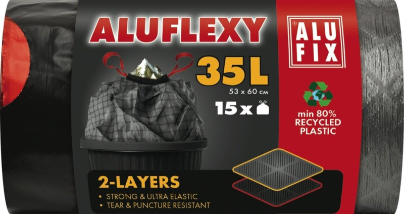 Vrečke za smeti s trakom, Aluflexy, Alufix, 35 l, 15 kosov