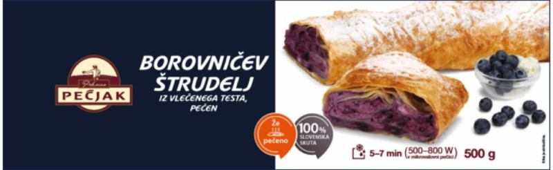 Pečen borovničev štrudelj, Pečjak, zamrznjeno, 500 g