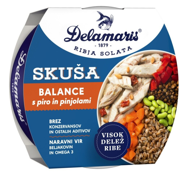 Skuša solata s piro in pinjolami Balance, Delamaris, 170 g