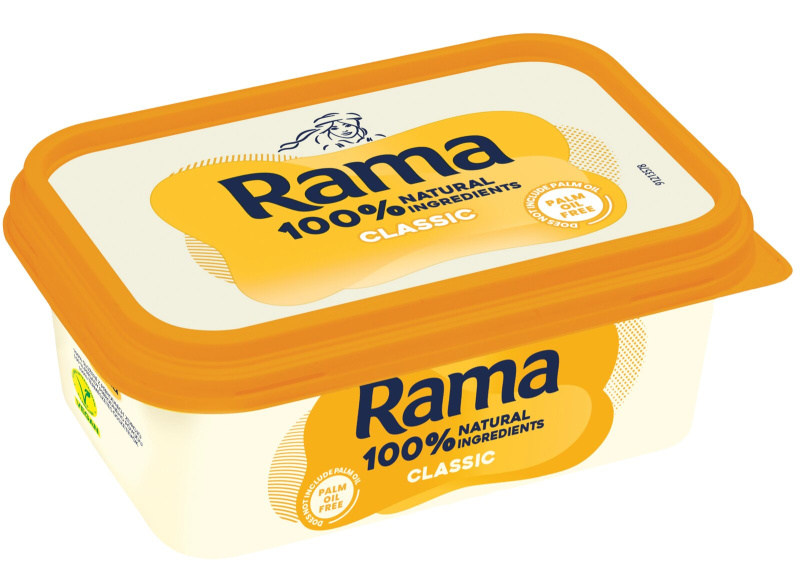 rastlinska olja in maščobe (repično 36%, sončnično, palmovo), voda, sol 0,3%, emulgator (sončnični lecitin), naravna aroma, kislina (mlečna kislina), barvilo (karoten), vitamini (A, D)