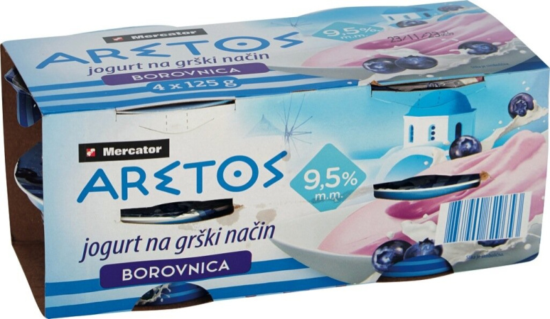 Jogurt na grški način, borovnica, Mercator, 4 x 125 g