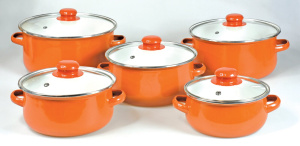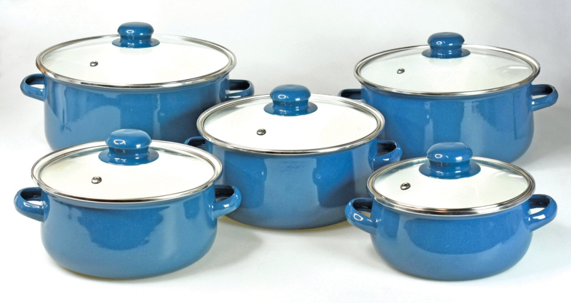 Set emajliranih loncev s pokrovom, 16-24 cm