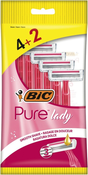 Ročni brivnik Pure 3 Pink, Bic, 4+2