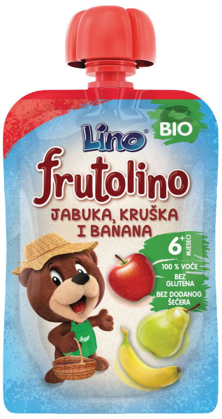 Bio kaša Frutolino, jabolko, hruška in banana, Lino, 100 g