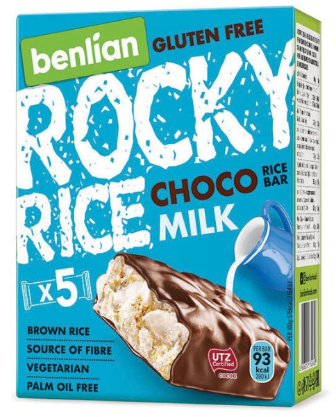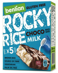 Riževa ploščica brez glutena, čokolada in mleko, Rocky Rice, 90 g, 5/1