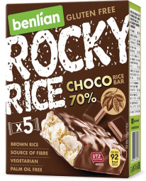 Riževa ploščica brez glutena, 70 % čokolada, Rocky Rice, 90 g, 5/1
