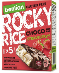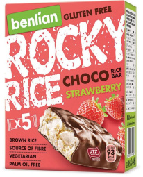 Riževa ploščica brez glutena, čokolada in jagoda, Rocky Rice, 90 g, 5/1