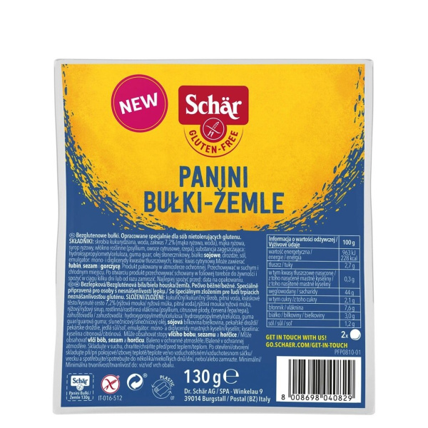 Koruzni škrob, voda, kislo testo 7,2 % (riževa moka, voda), riževa moka, rižev sirup, rastlinske vlaknine (psyllium, citrusi, pesa), zgoščevalci: hidroksipropil metil celuloza, guar gumi; sončnično olje, SOJINE beljakovine, kvas, sol, emulgator: mono- indigliceridi maščobnih kislin; kislina: citronska kislina. Lahko vsebuje sledi VOLČJEGA BOBA, SEZAMA in GORČICE.