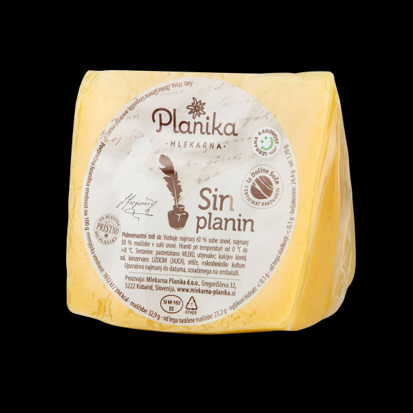 Polnomastni trdi Gregorčičev sir, 50 % m.m., Mlekarna planika, pakiran, kos cca 260 g, cena za kg, IK