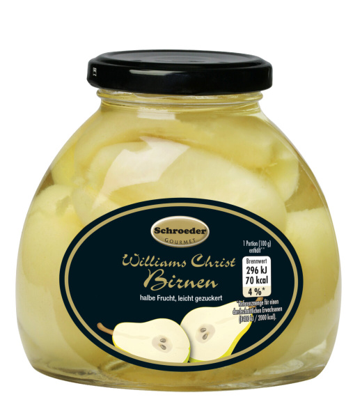 Manj sladek hruškov kompot, polovice, Williams Christ Schroeder Gourmet, 530g