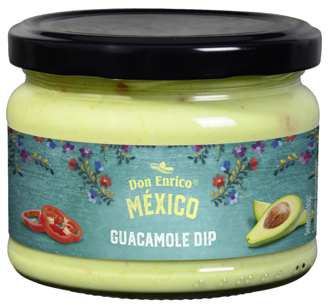 Voda, posneti JOGURT, sončnično olje, avokado (8,5 %), poper (8,5 %), mango, paradižnik, čebula, masleno MLEKO, jalapeno čili, koncentrat limoninega soka, začimbe, sol, izvleček začimb, mlečne beljakovine, sladkor, česen, modificiran škrob, sredstvo za zgoščevanje: guar gumi, ksantan;antioksidant: askorbinska kislina; kislina: citronska kislina; barvilo: kurkumin, E 141.