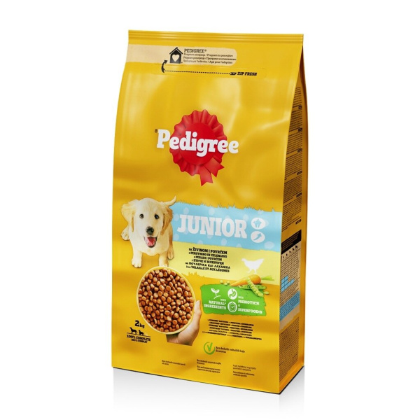 Hrana za pse Junior, perutnina in zelenjava, Pedigree, 2 kg, briketi