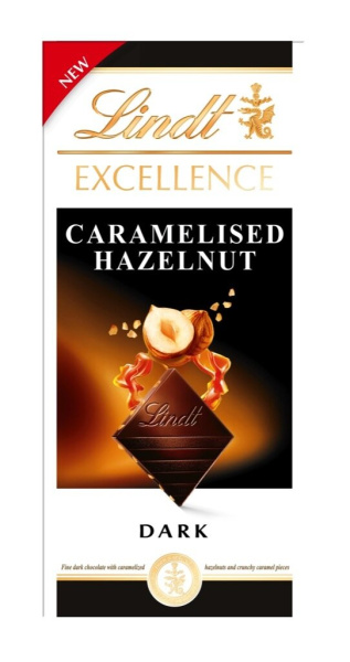 Temna čokolada Excellence s karamelo in lešniki, Lindt, 100 g