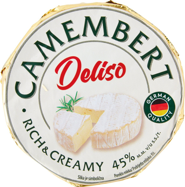 Mehki sir Camembert, s plemenito belo plesnijo, Deliso, pakirano, 125 g