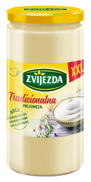 Sončnično olje 76 %, voda, GORČICA (voda, GORČIČNO seme, kis, sladkor, jodirana sol), RUMENJAKI 6,6 %, sladkor, jodirana sol, kis, regulator kislosti (vinska kislina), konzervans (E 200), antioksidant (E 385). Lahko vsebuje sledi MLEKA.