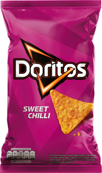 Koruza 68,7 %, repično olje [repično olje, antioksidanti (izvlečki rožmarina, askorbinska kislina, izvleček, bogat s tokoferolom, citronska kislina)], sladkor, maltodekstrin, hidrolizirane rastlinske beljakovine (vsebujejo SOJO), sredstva za uravnavanje kislosti (natrijevi acetati, citronska kislina, jabolčna kislina), ojačevalci okusa (mononatrijev glutamat, dinatrijev 5-ribonukleotidi), arome (vsebujejo SOJO, PŠENICO), čebula v prahu, jedilna sol, česen v prahu, kalijev klorid, barvila (ekstrakt paprike, kapsantin, kapsorubin), SOJA, PŠENIČNI izdelki. Lahko vsebuje druga ŽITA, ki vsebujejo GLUTEN.