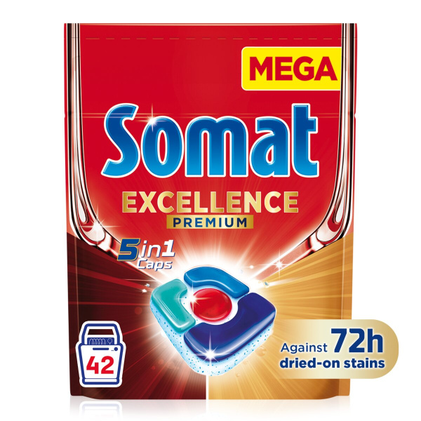 Detergent za strojno pomivanje posode, 5 in 1, Somat Excellence, 42/1