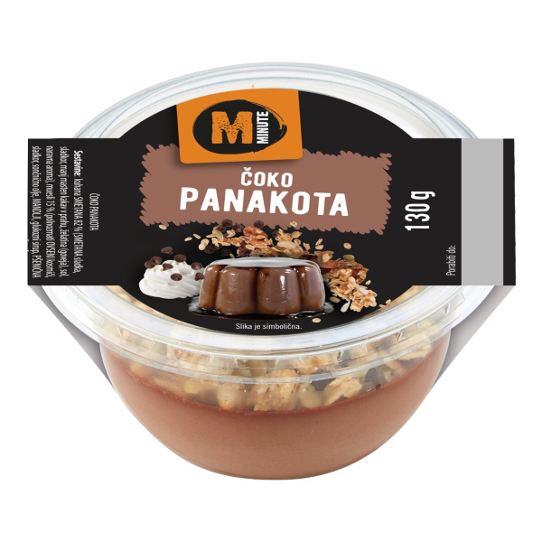Kuhana SMETANA (SMETANA sladka, sladkor, manj masten kakav v prahu, želatina (goveja), sol, naravna aroma), muesli (polnozrnati OVSENI kosmiči, sladkor, sončnično olje, MANDLJI, glukozni sirup, PŠENIČNA moka, riževa moka, med, polnozrnata PŠENIČNA moka, dekstroza, sol, aroma, sušeni ekstrakt JEČMENOVEGA slada, posneto MLEKO v prahu), čokoladne kapljice (sladkor, kakavova masa, kakavovo maslo, glukoza, emulgator (sončnični lecitin), naravna aroma vanilije).Lahko vsebuje sledi: SOJE, JAJC, OREHOV, LEŠNIKOV, ARAŠIDOV