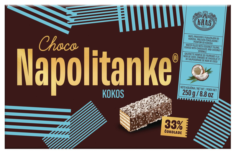 Čokoladne napolitanke, s kokosom, Kraš, 250 g
