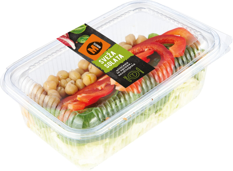 Zelena solata 34,8 %, čičerika 34,7 % (čičerika, voda, jodirana sol, antioksidant: askorbinska kislina), rdeča paprika 21,7 %, pesini listi 4,3 % in špinačni listi 4,3 %. Lahko vsebuje sledi GLUTENA, JAJC, MLEKA, RIB, SOJE, GORČICE, ZELENE, OREŠČKOV in SEZAMA.