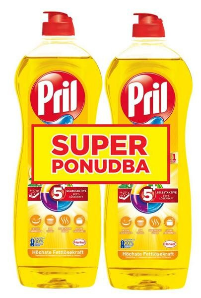 Detergent za ročno pomivanje posode Lemon, Pril, 2 x 750 ml