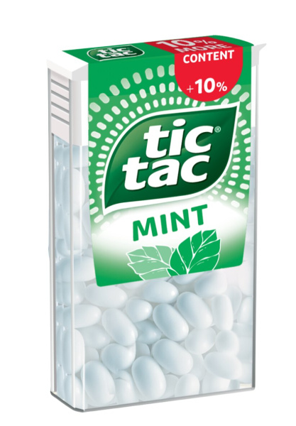 sladkor, maltodekstrini, fruktoza, sredstvo za zgostitev (gumi arabicum), rižev škrob, sredstvo proti sprijemanju (magnezijeve soli maščobnih kislin), arome, eterično olje mete, glazirno sredstvo (karnauba vosek).