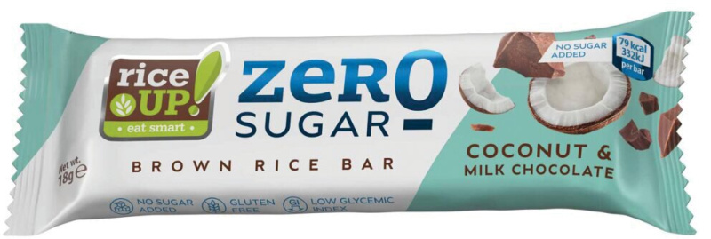 Polnozrnata riževa ploščica, mlečna čokolada in kokos, brez dodanega sladkorja, RiceUp, 18 g