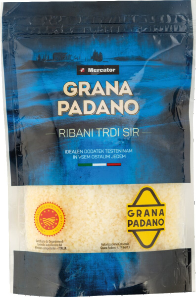 Trdi ribani sir Grana Padano, zorjen 12 mesecev, ZOP, min. 32 % m.m., pakiran, Mercator, 150 g