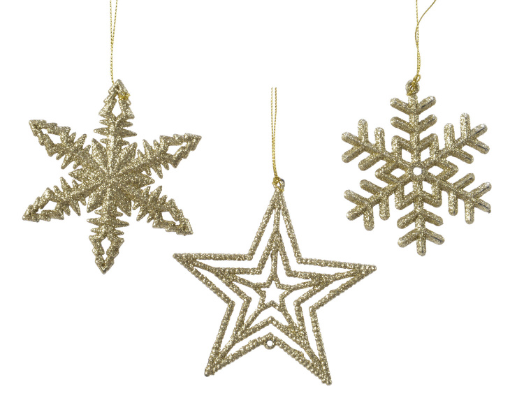 Novoletni okrasek, snežinke z bleščicami, zlata, 10 cm